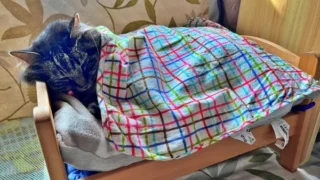 夜は飼い主(ママ)のお布団の中でぬくぬく寝てたんだから。w