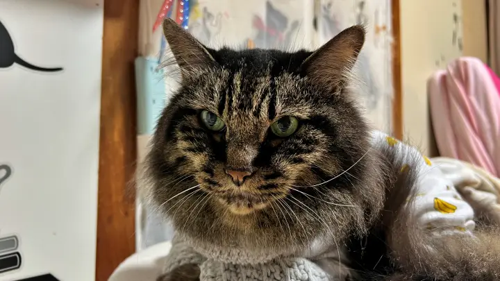お家で飼い主とトラちゃんとで「阪神タイガース優勝パレードごっこ」をしてました♪