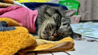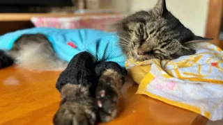 これぞ、18年家の中でしか生活した事が無い「箱入り18歳シニア猫の実態です」