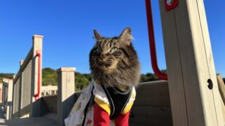 シニア猫のトラちゃんですがお家でゴロゴロも良いけど、いい景色やお家と違った空気感じに行こうぜ♪