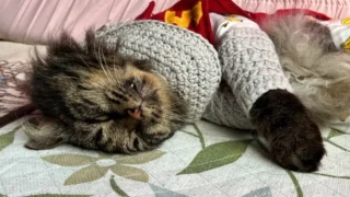 最近はエアコンで涼しくしてる部屋で丸まって寝てたのでちょっと薄手の洋服を着せてたのに。