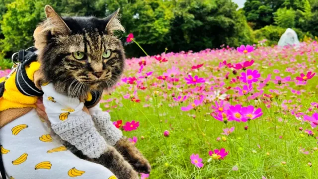 この日は人も少なくてトラちゃんが安心して歩けたのでトラちゃんものんびりとコスモス畑を散歩。