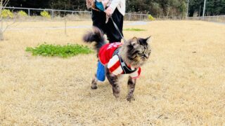この日は人も少なくてトラちゃんが安心して歩けたのでトラちゃんものんびりとコスモス畑を散歩。