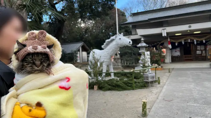 2026年お正月ちょっとすぎてから香川県まんのう町にある「大宮神社」へ干支の巨大オブジェを見に行きました♪この日は朝早く行ったので御朱印が買えませんでしたが、人が居なくてトラちゃんとゆっくり大宮神社を参拝できました。白馬のオブジェが可愛いですね。