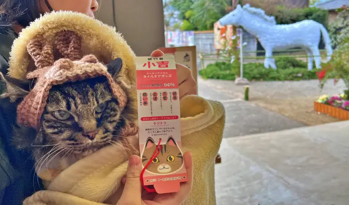 大宮神社には「にゃんこみくじ」がありましたので、トラちゃんもおみくじをしてみました♪